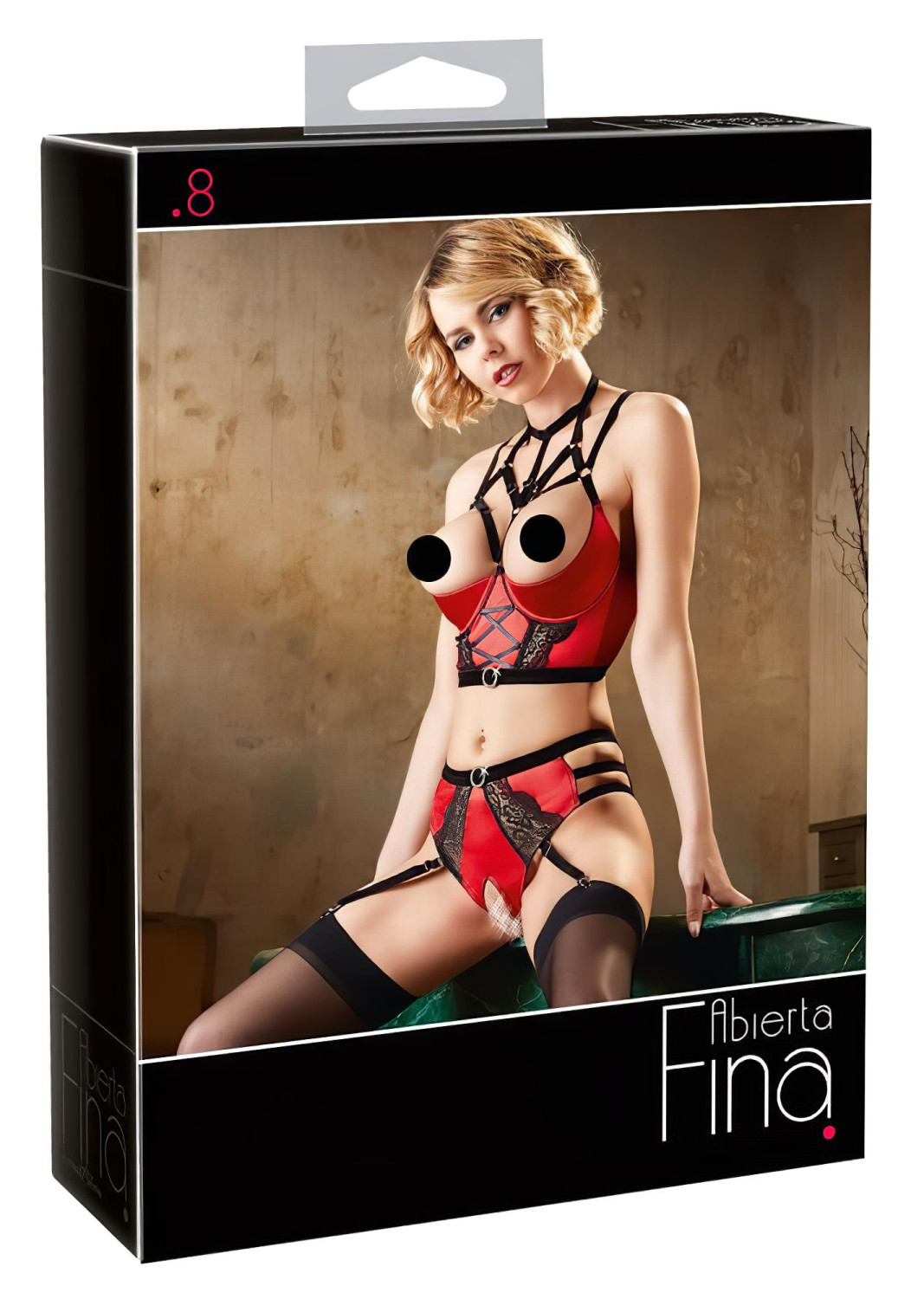 Impozantní a neodolatelná spodní prádlo sada v odvážném, elegantním stylu, kterou činí opravdu jedinečnou páskové detaily, černá krajka a třpytivé kamínky – Abierta Fina kroužkové podprsenkové sada!Tato sada není běžnou volbou: její speciální design zdůrazňuje ženské křivky a zároveň zajišťuje luxusní vzhled. Může být perfektním dárkem nebo ideální volbou pro romantický, nezapomenutelný večer.Proč je dobrá Abierta Fina kroužková podprsenková sada?Podšitá, mírně vyztužená podprsenka zvedá ňadra a krásně formuje dekolt, zatímco otevřený střih kalhotek lze nosit i během aktu. Speciální páskové detaily, třpytivé kamínky a kovové kroužky vytvářejí svůdný, přesto elegantní efekt. Tato sada je dokonalou kombinací sebevědomí a smyslnosti.Proč zákazníci mají rádi Abierta Fina kroužkovou podprsenkovou saduSpeciální design – páskové a krajkové provedení, které zdůrazňuje tvary těla.Podšitá podprsenka – s mírně vyztuženými košíčky pro krásný tvar.Otevřené kalhotky – pohodlně nositelné během aktu.Elegantní zdobení – kamínky a kovové kroužky činí tuto sadu opravdu výjimečnou.Prémiová kvalita – navrženo v německu, pečlivě zpracované spodní prádlo.Jak používat?Noste sadu pro romantické večery nebo zvláštní příležitosti. Doplněte ji vhodnými punčochami a užijte si sebevědomý, smyslný vzhled, který zaručeně okouzlí vašeho partnera.Obsah baleníHalter pásková podprsenka s krajkovými vložkami a kamínkovým zdobenímPáskový podvazkový pás s otevřenými kalhotkamiKombinace barev červeno-černáVlastnosti produktuMateriál: 90% Polyester, 10% Elastan; krajková část: 90% Polyamid, 10% ElastanBarva: červeno-černáVlastnosti materiálu: pohodlný, pružný, s leskem saténuZdobení: doplněno kamínky a kovovými kroužkyNa co si dát pozor při používání sady Abierta Fina kroužkové podprsenkové sady:Sada neobsahuje punčochy, ty je třeba zakoupit zvlášť. Čistěte ručně v jemném pracím prostředku, aby si jemné detaily a ozdoby dlouho udržely svou původní krásu.