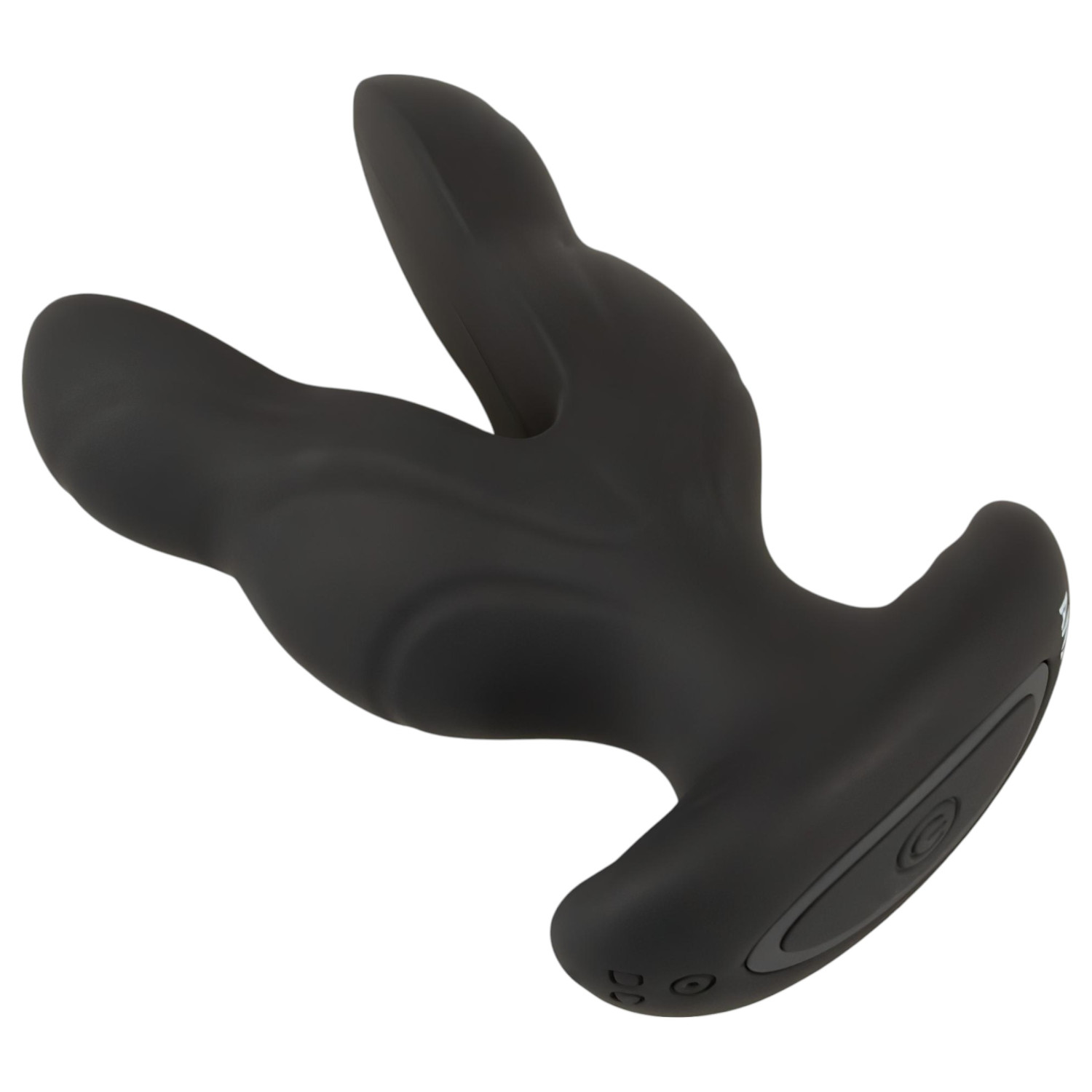 Revoluční anální vibrátor, který kombinuje elektro stimulaci a vibrace a díky rozšiřovací funkci nabízí opravdu intenzivní zážitek.Proč si ho zamiluješ?Dva v jednom: vibrace a elektro stimulace v jednom parádním kousku.Rozšiřovací funkce pro ještě silnější anální potěšení.Lze ovládat dálkovým ovladačem až na 10 metrů.Bezpečná ergonomická základna pro maximální pohodlí.Sametový silikonový povrch pro snadné zavedení i používání.Na co dát pozor:Pro zachování kvality silikonu používej pouze lubrikant na vodní bázi.Před i po použití hračku důkladně očisti.Baterii typu AAA do dálkového ovladače je třeba koupit zvlášť.Jak používatStiskni ramena kolíku a zaveď ho do anální oblasti.Vyber si režim vibrací a elektro stimulace pomocí ovladače nebo tlačítek na hračce.Užij si intenzivní stimulaci a rozšíření během používání.OvládáníDálkovým ovladačem jednoduše přepínáš mezi 8 vibračními a 8 elektro stimulačními režimy. Pokud nechceš používat ovladač, stačí použít tlačítka přímo na hračce.NabíjeníPřístroj se nabíjí přes USB kabel, který je v balení. Pro dálkové ovládání potřebuješ jednu AAA baterku – ta není součástí balení.Obsah balení1x RC Power Expander Plug1x USB nabíjecí kabel1x dálkový ovladačSpecifikace produktuCelková délka: 11 cmVložitelná délka: 9 cmPrůměr: max. 4,9 cm (stlačeno), max. 6,5 cm (roztaženo)Hmotnost: 103 gMateriál: silikon, PU, ABSBarva: černáDoporučené čištění: Důkladně omyj vlažnou vodou a jemným mýdlem, opláchni a nech vyschnout. Doporučujeme: použití speciálního čističe (8718627520062) – lze dokoupit samostatně.