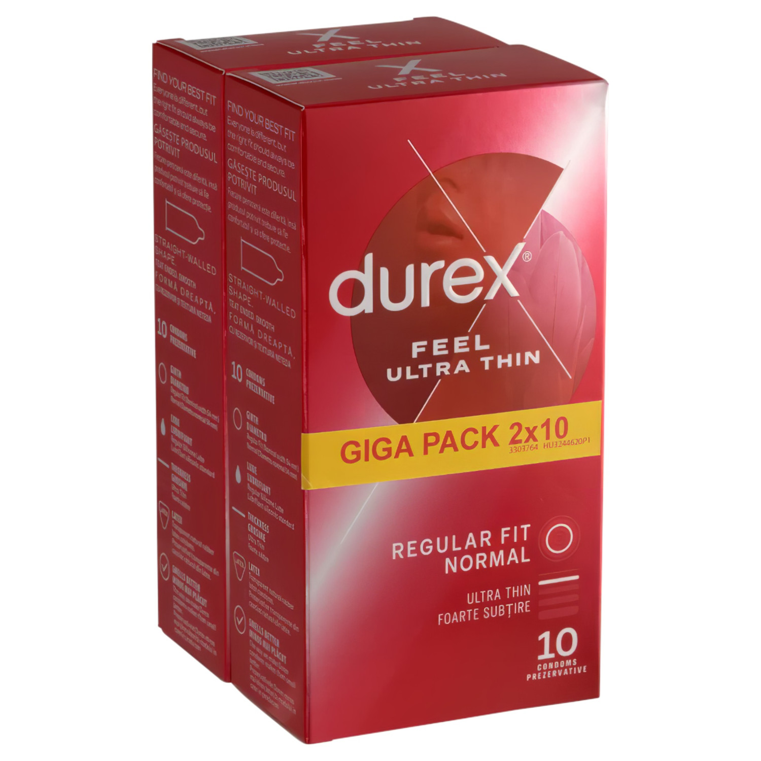 Realistický zážitek, jako byste nic neměli – dvakrát 10 kusů tenkých kondomů Durex pro maximální smyslnost!Proč je Durex Feel Ultra Thin – ultra realistický kondom (2x10ks) tak dobrý?Durex Feel Ultra Thin nabízí speciální design, který je až o 20 % tenčí, což poskytuje intenzivnější zážitek, přičemž zachovává spolehlivou ochranu Durex. Pokud si přejete přirozený pocit, ale nechcete se vzdát bezpečnosti, tento kondom je ideální volbou.Proč zákazníci milují Durex Feel Ultra Thin – ultra realistický kondom (2x10ks)Extra tenký design: až o 20 % tenčí na špičce – pro ještě smyslnější pronikáníEasy-on tvar: anatomický fit pro pohodlné a bezpečné použitíLubrikovaný silikonem: extra kluznost, která ještě zvyšuje potěšeníPrůhledné a diskrétní: přirozený vzhled, který neodvádí pozornost100% elektronicky testováno: tradiční bezpečnost a kvalita Durex2x10 kusové balení: ideální pro ty, kteří chtějí pravidelně využívat výhody ultra tenkých kondomůObsah balení2 krabičky, každá s 10 ultra tenkými kondomy (celkem 20 ks)Vlastnosti produktuMateriál: latex (přírodní guma)Barva: průhlednáLubrikace: předem lubrikováno silikonovým lubrikantemTvar: Easy-on design se zásobníčkem na spermaDélka: 195 mmPrůměr: 54 mmTloušťka: 0,052 mm – ultra tenké, zejména na špičcePoužití: na jedno použitíJak používatOtevřete obal opatrně, mimo dosah ostrých předmětůNasaďte na ztopořený penis s ohledem na zásobníček na spermaPo použití srolujte, zabalte a vyhoďte do košeNa co si dát pozor při používání Durex Feel Ultra Thin – ultra realistického kondomu (2x10ks):Na jedno použití: nepoužívejte znovuSkladování: uchovávejte na suchém a chladném místě, mimo dosah slunečního zářeníPřed použitím: vždy zkontrolujte neporušenost obaluLatexový materiál: může způsobit alergii osobám citlivým na latex