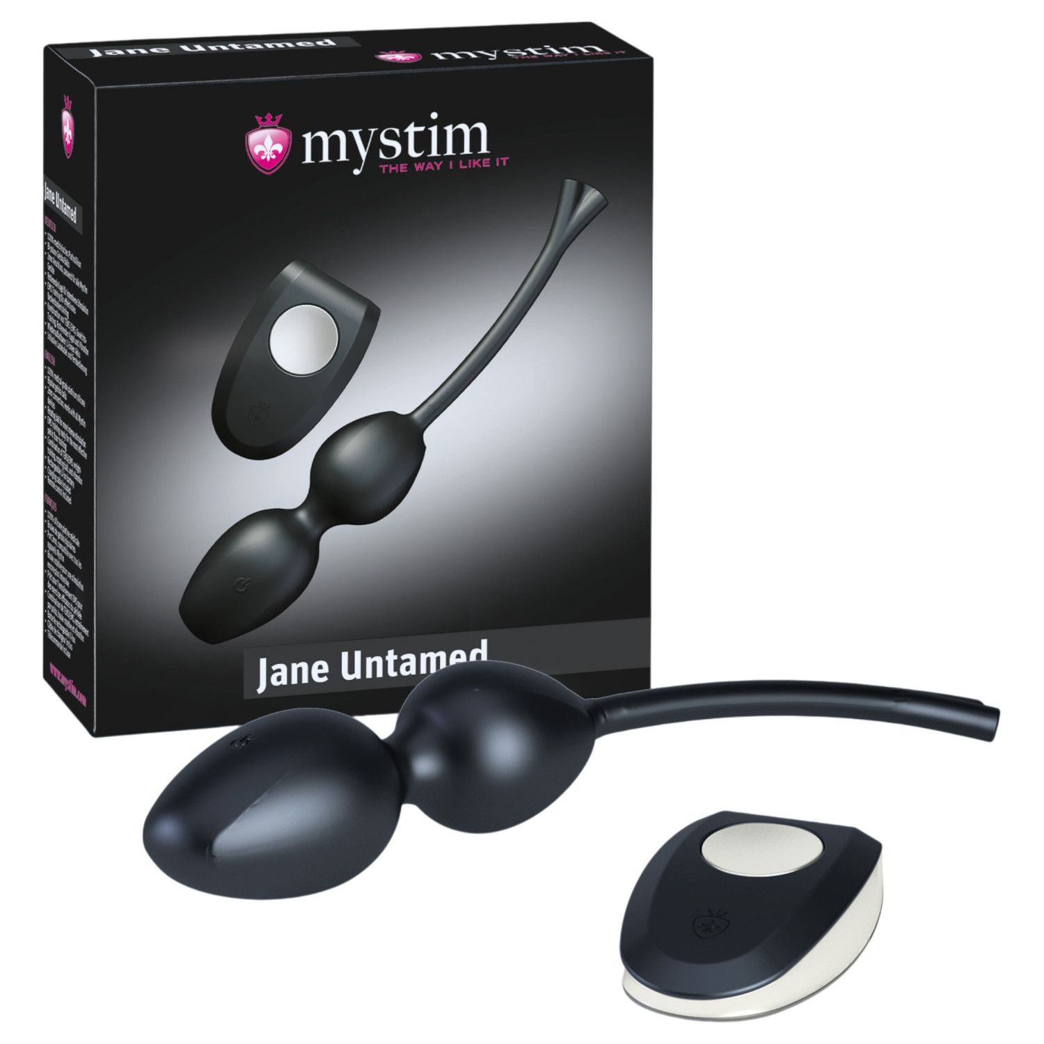 Mystim Jane Untamed vibrační gejša kuličky duo poskytují současně smyslové potěšení, posílení pánevního dna a EMS stimulaci v jednom výjimečném prémiovém zařízení.Proč je Mystim Jane Untamed vibrační gejša kuličky duo dobré?Mystim Jane Untamed vibrační gejša kuličky duo není jenom vzrušující intimní hračka, ale také komplexní řešení, které pomáhá s posilováním svalů pánevního dna, zatímco jemné vibrace a stimulace zvyšují potěšení.Proč zákazníci milují Mystim Jane Untamed vibrační gejša kuličky duoDvojí stimulace – trénink pánevního dna a potěšení v jednomEMS (elektrická stimulace svalů) – efektivnější posilování svalů s cílenými impulsyIntegrovaná vibrace s dálkovým ovládáním – perfektní doplňkový podnět pro plný zážitekVnitřní rotující kuličky – téměř tiché fungování, i při přirozeném pohybu100% lékařský silikonový povrch – přátelský k pokožce, hedvábný na dotekVodotěsné provedení – snadno čistitelné, použitelné i ve spršeIdeální pro začátečníky – příjemný, postupný trénink a hraDálkové ovládání – extra vzrušení, pokud předáte kontroluObsah balení1 ks Mystim Jane Untamed vibrační gejša kuličky duo1 ks dálkový ovladač pro kontrolu vibracíNávod k použití (v DE a EN jazyce)Vlastnosti produktuTyp: E-Stim gejša kuličky s vibracíDélka: 20,8 cmPrůměr: 3,6 cmHmotnost: 89 gBarva: černáMateriál: 100% lékařský silikonový povrchVodotěsnost: anoFungování: zcela tichéPřipojení: Mystim round plugDůležité: powerbox je nutný (k zakoupení samostatně) 05926090000, 05926090000Ovládání Vibrace lze regulovat dálkovým ovládáním, na 10 různých úrovních. Pro aktivaci e-stim impulzů je nutný kompatibilní Mystim powerbox.Na co si dát pozor při používání Mystim Jane Untamed vibrační gejša kuličky duo:Používejte pouze vodní lubrikantyPřed i po každém použití doporučujeme důkladné čištěníPro EMS funkci je nutný samostatný powerboxNepoužívejte na podrážděné nebo poškozené intimní oblastiPři skladování dbejte na to, aby se nedotýkaly jiných silikonových produktůVýrobek sám o sobě není elektro-stimulační.