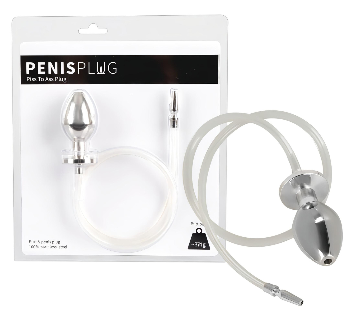 Pouze pro opravdové labužníky mezi milovníky sexu, nebo jak si užít piss play trochu jinak! Proč to stojí za to?Fanoušci uretrálních a análních potěšení, pozor: dutý ocelový anální kolík propojený dutým dilatátorem s hadičkou!Vyrobený z kvalitní nerezové oceli, masivní, dutý anální dildo s úzkou základnou a anatomickým tvarem, ke kterému snadno připojíš dutý dilatátor díky přiložené hadičce.Dilatátor je také dutý, takže umožňuje volný průtok spermatu i moči.Sada neobsahuje žádné elektrické součásti, je tedy zcela vodotěsná, snadno se čistí a lze ji používat různými způsoby.POZOR: vždy dbej na důkladnou čistotu, dezinfekci a dostatečné použití lubrikantu. Použití: Spoj kolík s dilatátorem pomocí hadičky, dobře namaž anální dildo a zasuň ho do svého zadečku, potom opatrně zaveď dilatátor do močové trubice. Jedinečný pocit, když moč protéká hadičkou přímo do tvého zadečku! TIP NAVÍC: Dildo můžeš nasadit i svému partnerovi. Stejně tak si ho mohou střídat páry. Vlastnosti: Celková délka análního dilda: 7,8 cmPrůměr: max. 3,7 cmHmotnost: 374 g (pořádně těžké provedení)Délka dilatátoru: 3,3 cmPrůměr: max. 0,9 cmDélka hadiček: 62 cm (v balení 2 kusy – jedna průhledná, jedna černá)Materiál: nerezová ocel (dilatátor i anální dildo), silikon (hadičky) – bez ftalátů, splňuje EU normy.