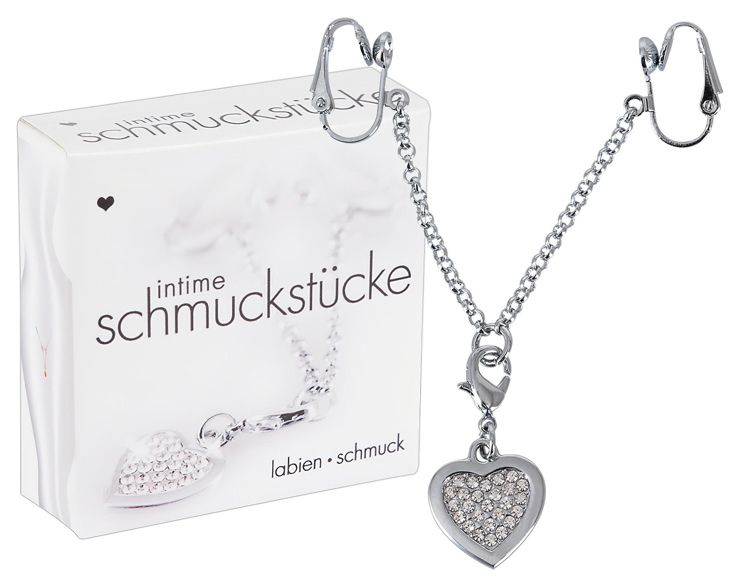 Okouzli svého partnera tímto zářivým intimním šperkem, který díky jemné eleganci a třpytu přinese do vašich společných chvilek ještě víc intimity! Proč je super? Elegantní vzhled – Stříbrné srdíčko zdobené drobnými, třpytivými bílými kamínky.Univerzální použití – Klipsy můžeš připnout na stydké pysky nebo i na uši, přívěsek lze sundat a použít jako náhrdelník nebo náramek.Snadné nasazení – Klipsy upevníš jednoduše a bezpečně, není potřeba piercing.Na co myslet: Před a po použití šperk omyj jemnou mýdlovou vodou a dobře osušte.Vyhýbej se příliš silnému tahání nebo napínání klipsů, pro pohodlné nošení.Pokud bys cítila jakékoli podráždění nebo nepohodlí, šperk hned sundej.Jak používat: Opatrně klipsy rozevři.Připevni klipsy na stydké pysky nebo na ucho a jemně je zavři, aby pohodlně seděly.Přívěsek jednoduše odepneš malou karabinkou a nasadíš na řetízek nebo náramek.Ovládání: ovládání není potřeba, šperk funguje mechanicky. Nabíjení: Šperk nepotřebuje nabíjet ani baterie. Balení obsahuje: 2 klipsy propojené krátkým řetízkem1 stříbrný přívěsek ve tvaru srdce s drobnými, třpytivými bílými kamínkyVlastnosti produktu: Velikost přívěsku: 1,5 x 1,5 cmVelikost klipsů: 1,2 x 0,7 cmMateriál: slitina oceli, skloBarva: stříbrná