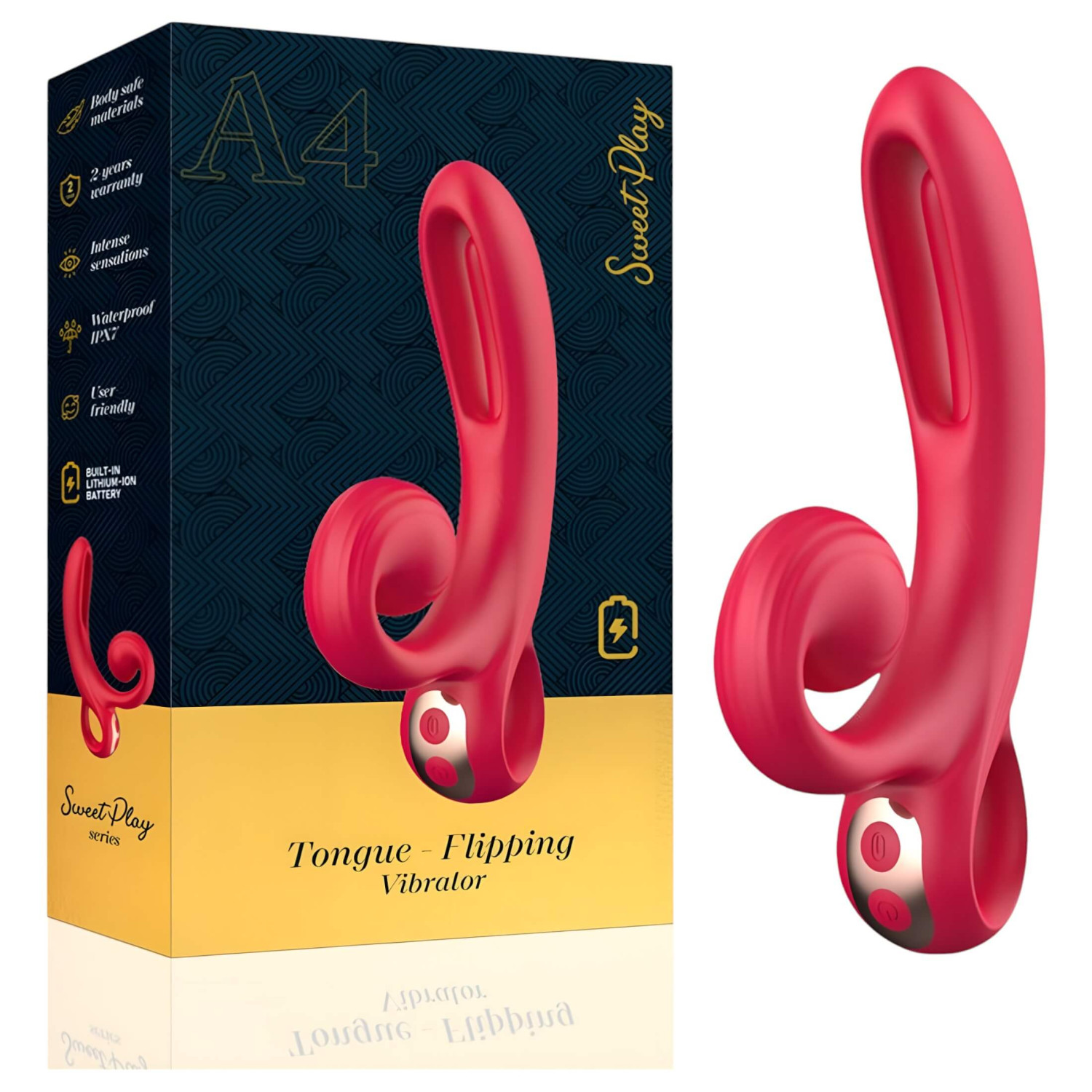 Zažij současnou stimulaci klitorisu a G-bodu díky speciálním pohybům jazýčku a přírazové funkci vibrátoru!Proč si to užiješ?Intenzivní dvojitá stimulace: pohyblivý jazyk se postará o klitoris, příraz zase potěší G-bod.Tělu přátelský materiál: Vyrobeno z lékařského silikonu, hypoalergenní, šetrný k pokožce a nedráždivý.7 funkcí: Různé vibrační a jazýčkové režimy pro zážitek podle tvých představ.Voděodolnost: Třída IPX7 – můžeš používat ve vaně i sprše.Vestavěná baterie: Nabíjení přes USB, dlouhá výdrž.Pohodlná rukojeť: Ergonomicky tvarováno pro snadné držení.Na co myslet:Používej lubrikant na vodní bázi pro pohodlnější a příjemnější pocit.Před i po každém použití produkt důkladně očisti.Skladuj v suchu a prachu – tak prodloužíš jeho životnost.Jak používat?Po nabití nanes na vibrátor lubrikant na vodní bázi.Vlož do vaginy tak, aby jazýček dosedl na klitoris.Zapni, zvol si oblíbený režim a užij si dvojitou stimulaci vibracemi i jazýčkem najednou!Ovládání:Pomocí tlačítek na vibrátoru jednoduše zvolíš pohyby jazýčku a příraz. Můžeš používat samostatně nebo oba režimy najednou.Připojení nabíječky:Nabíjí se pomocí přiloženého USB kabelu. Magnetické kontakty najdeš na zadní straně vibrátoru.Balení obsahuje:1× vibrátor s pohyblivým jazýčkem1× USB nabíjecí kabelVlastnosti:Materiál: Lékařský silikon, ABS (splňuje EU normy, bez ftalátů)Rozměry: 18,2 × 9,6 × 3,2 cmHmotnost: 184 gVoděodolnost: IPX7Baterie: vestavěná, nabíjení USBDoba používání: 1,5 hodiny na plné nabitíDoba nabíjení: 2 hodinyBarva: korálováDoporučení k čištění: Po použití důkladně umyj jemným mýdlem a vlažnou vodou, opláchni a nech uschnout. Doporučujeme použít speciální čisticí sprej (8718627520062) – k zakoupení zvlášť.
