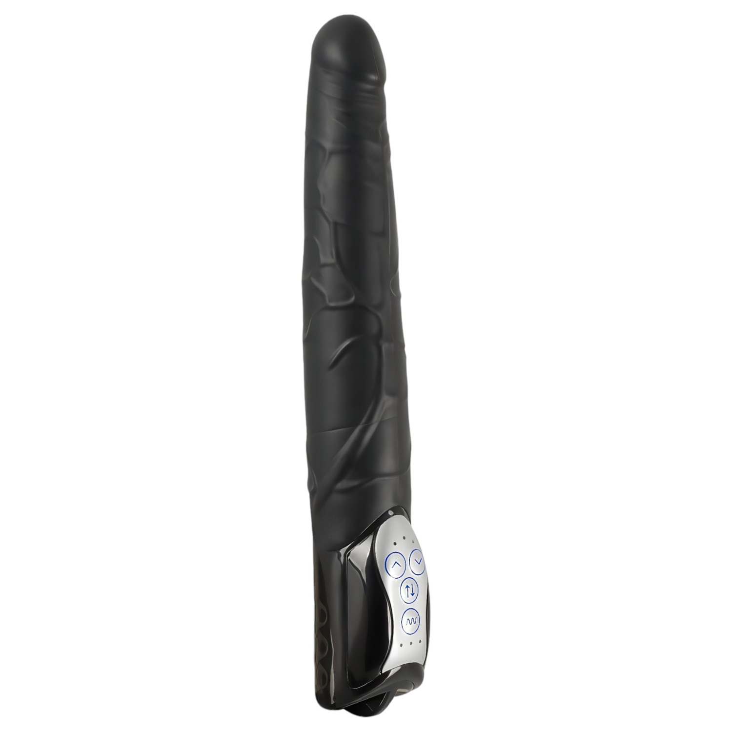 3 úrovně houpání dovnitř a ven, šťouchací funkce a vibrace – pružný materiál, výjimečná délka! Proč si ho zamiluješ?Pevné jádro v pružném materiálu (nelze ohýbat)Realistický pohyb dovnitř a ven – jako neúnavný milenec uvnitř tebeVibrační motor – s příjemným brněnímTvar penisu, výrazný žalud a lehce žilkovaný povrchVýrazná délka – pro milovnice hlubokých prožitků3 rychlosti šťouchání a 7 vibračních režimů – rozmanité zážitkyFunkce ovladatelné nezávisle na soběVhodný pro vaginální i pokročilé anální hrátkyNa co si dát pozor:Před a po každém použití pečlivě vyčistiPoužívej pouze lubrikant na vodní báziPo análním použití používej do vaginy jen po důkladném očištěníNení vodotěsný – při čištění dávej pozor na elektrické části, aby se nenamočilyPotřebuje 3 tužkové baterie (3 x AA), které nejsou součástí balení, lze dokoupit zvlášťOvládání: Tlačítko se šipkami nahoru a dolů: dlouhým podržením zapínáš/vypínáš šťouchací funkci. Po zapnutí můžeš šipkami měnit rychlost pohybu. Spodní tlačítko s vlnkou: dlouhým stiskem zapínáš nebo vypínáš vibrace, krátkým stiskem přepínáš mezi jednotlivými vibračními režimy. Parametry a vlastnosti:Pevné jádro, pružný materiálPohybující se výrazný žalud – rozsah pohybu cca 1 cmŽilkovaný povrchOvládání pomocí čtyř tlačítekOsvětlený ovládací panel3 rychlosti pohybu nahoru a dolů7 vibračních režimůFunkce ovladatelné odděleněCelková délka (včetně ovladače): 27 cm (plus pohyb)Délka pro zasunutí (po ovladač): 19 cm (plus pohyb)Průměr: 3-4,2 cmHmotnost: 334 gBarva: černáMateriál: ABS, TPE (bez ftalátů, splňuje evropské normy)Doporučení pro čištění: Důkladně omýt jemným mýdlem a vlažnou vodou, dobře opláchnout a nechat uschnout. Doporučujeme použít speciální čistič – možno dokoupit zvlášť.
